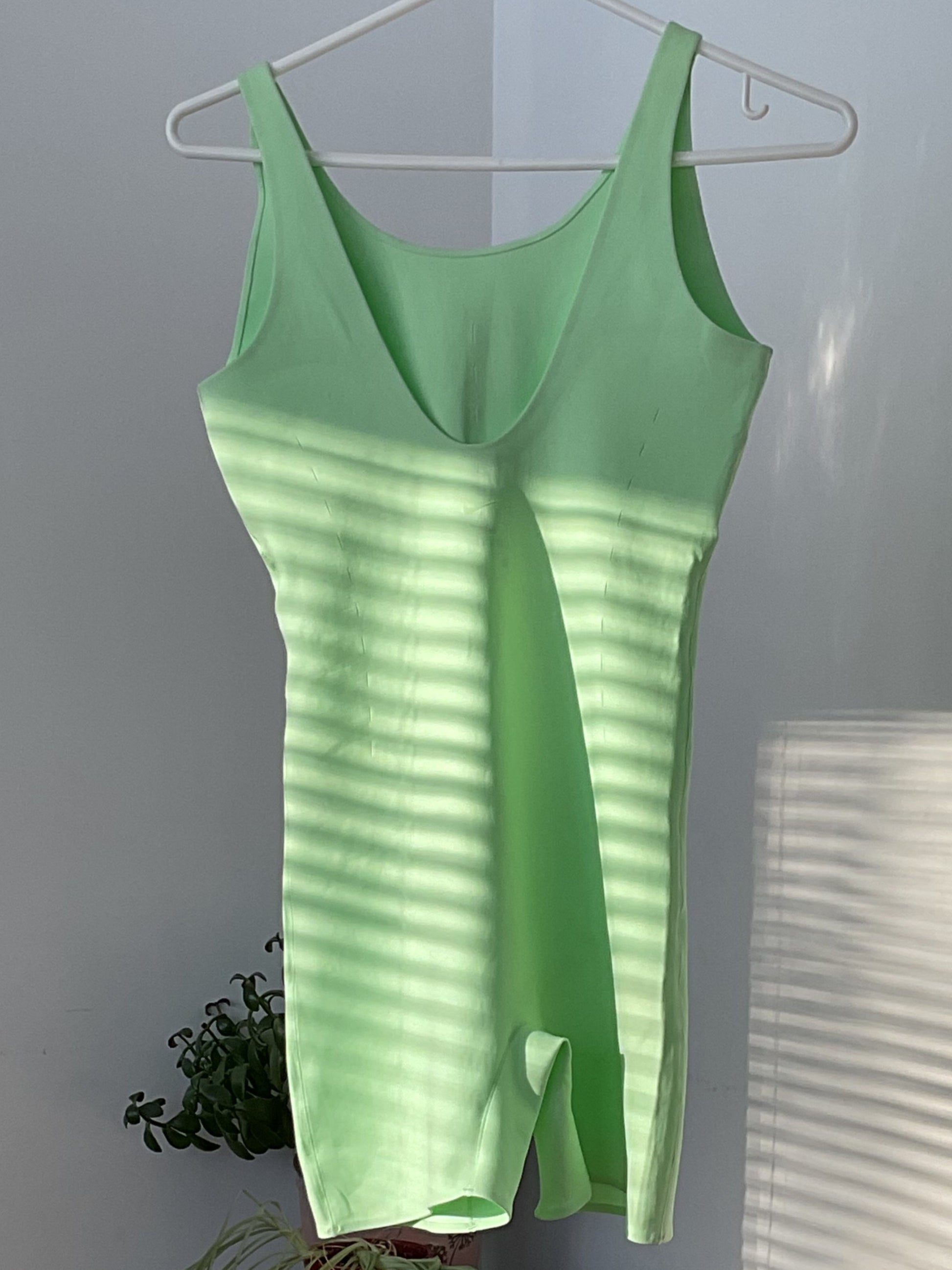 C’est une combinaison d’entraînement sans manches, bien ajustée au corps. Le tissu est extensible et gainant, ce qui fait que tout reste bien en place pendant l’entraînement. On peut bouger librement sans avoir à se soucier de quoi que ce soit — on se concentre simplement sur ce qu’on fait et sur le fait qu'on est magnifique dans notre jolie combinaison ! 👌